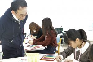 ≪作業療法士科の体験授業≫ 絵葉書にチャレンジ!楽しいだけではなく、どんな目的で行うのかを学んでいます。