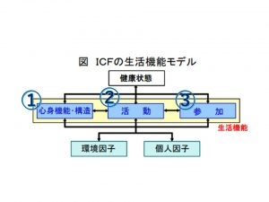 ②の活動や③の参加が果たせていないことになり、リハビリとしてはまだ不十分だといえます。