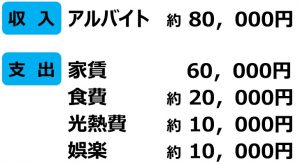 ▼一人暮らしにかかる1ヶ月の費用(福田くんの場合)