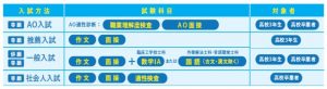 AO入試・一般入試・社会人入試です。