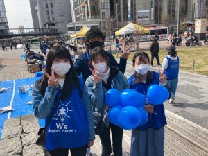 今回は4月2日に姫路駅前キャッスルガーデンにて開催された、世界自閉症啓発デーの学生ボランティア