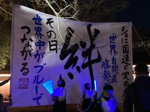 姫路城がブルーにライトアップ、世界自閉症啓発デーのボランティアに参加しました!