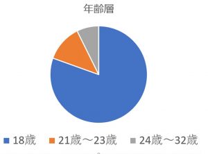 高校卒業してすぐに入学された方が多いですが、実は高校既卒者の方がクラスの約25%を占めています!かなり多いですよね。年齢層を見てみましょう。