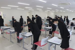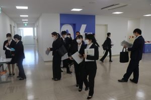 説明会の前に、学生たちは「よろしくお願いします!」、「ありがとうございました!」の