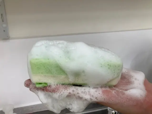 ②スポンジで洗剤を泡立てる