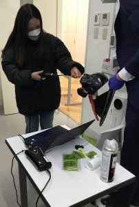 嚥下内視鏡検査は医師が実施するものなので、実際には言語聴覚士は内視鏡を操作できませんが、今回は特別に操作させていただきました。