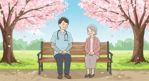 病院近くの桜並木を、リハビリ中の患者さんと一緒に散歩していた時のことです。