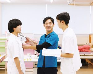 作業療法士になるためには、知識だけではなく技術も必要となるため、授業では様々な検査道具を使って技術を磨いていきます。