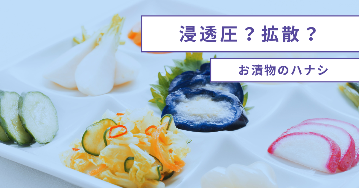 きゅうりや大根を塩に漬けると、しんなりして水が出てきますよね。あれは偶然ではなく、ちゃんとした科学の力。これは、濃度の高い塩水に接した野菜の細胞から水分が浸透圧によって外へ移動し、逆に塩分は拡散によって内部へ浸み込む現象です。つまり、お漬物は水分と塩分が行ったり来たりすることでできている食品なんです。