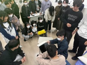 1年生の特別講義では、濱口さんの腕や足に直接触れさせて頂き、筋肉の緊張や動きについて学ばせて頂きました。