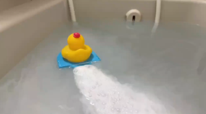 あひる隊長の下にバブ(炭酸入浴剤)をセットし、お風呂で泳がせて楽しみました。