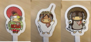 通路に記念撮影スポットがあり、その前にご当地ゆるキャラのグッズが置いてありました。