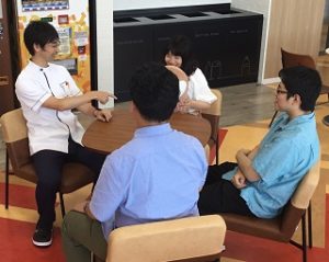 横山くん)私は大阪府の堺市から通学しています。学校を決めるとき、姫路に新しい学校ができると聞き、専門学校で勉強するなら、学校行事やクラス運営に関してもチャレンジしがいのある、できたての学校がいいと思って決めました。通学時間は長いですが、姫路は新快速の始発駅なので、帰りは電車で座れますよ。行きはさすがに混雑しているのでなかなか座れません。電車のなかで、座席を確保するテクニックを開発中です(笑)。