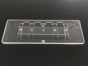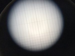 血球計算盤はプレパラートで、顕微鏡で見ると線がたくさん入っています。