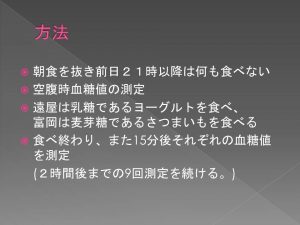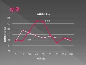 糖分を取ると血糖値が上昇しやすくなりますが、食べ物の違いで血糖値のあがり方に違いがあるか疑問に思ったそうです。
