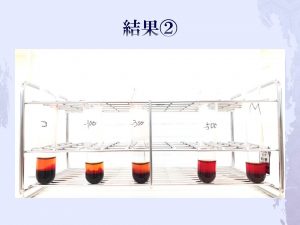 実験について、目的、方法、結果、考察をレポートにまとめました。そして、全員で発表会も行いました。
